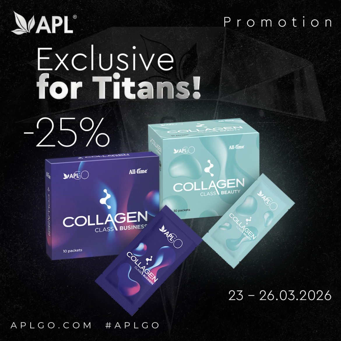 Titans, your exclusive offer! Collagen Beauty and Collagen Business for firmness and radiance with a super-discount of 25%. Drink beauty every day and prolong the youth of your joints and the beauty of your skin!